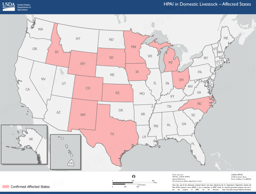 [3]USDA,https://www.aphis.usda.gov/livestock-poultry-disease/avian/avian-influenza/hpai-detections/livestock