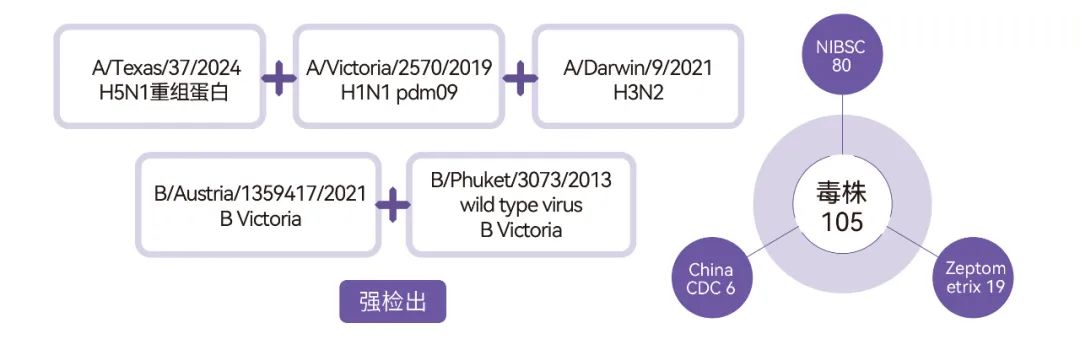 對(duì)NIBSC、CDC以及Zeptometrix毒株盤(pán)總計(jì)105株毒株可有效檢出: