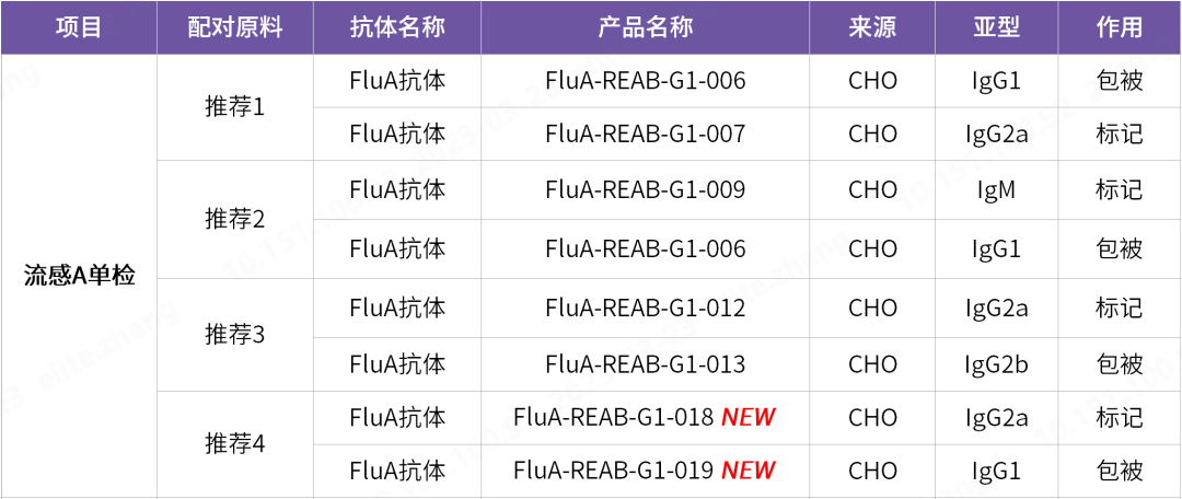 菲鵬生物針對2023年春季國內(nèi)流行的FluA/H1和FluA/H3亞型流感病毒,推薦配對抗體原料重點驗證毒株信息如表2: