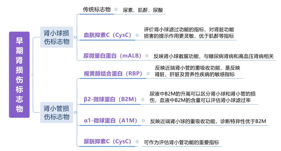 對(duì)于腎臟病的診斷,目前醫(yī)院和體檢中心基本都配有腎功能檢查套餐,定期檢測(cè)可以輔助診斷腎臟的狀態(tài)。在腎功能的檢測(cè)項(xiàng)目中,目前國內(nèi)應(yīng)用最廣泛、臨床意義最為明確的腎功能診斷項(xiàng)目一般包括八項(xiàng),即肌酐(Crea)、尿素(Urea)、胱抑素C(CysC)、尿酸(Urea Acid)、微量白蛋白(mALB)、β2-微球蛋白(B2M)、α1-微球蛋白(A1M)和視黃醇結(jié)合蛋白(RBP),簡稱 CUCUMBAR。具體的腎功能診斷效果簡單歸納如下: