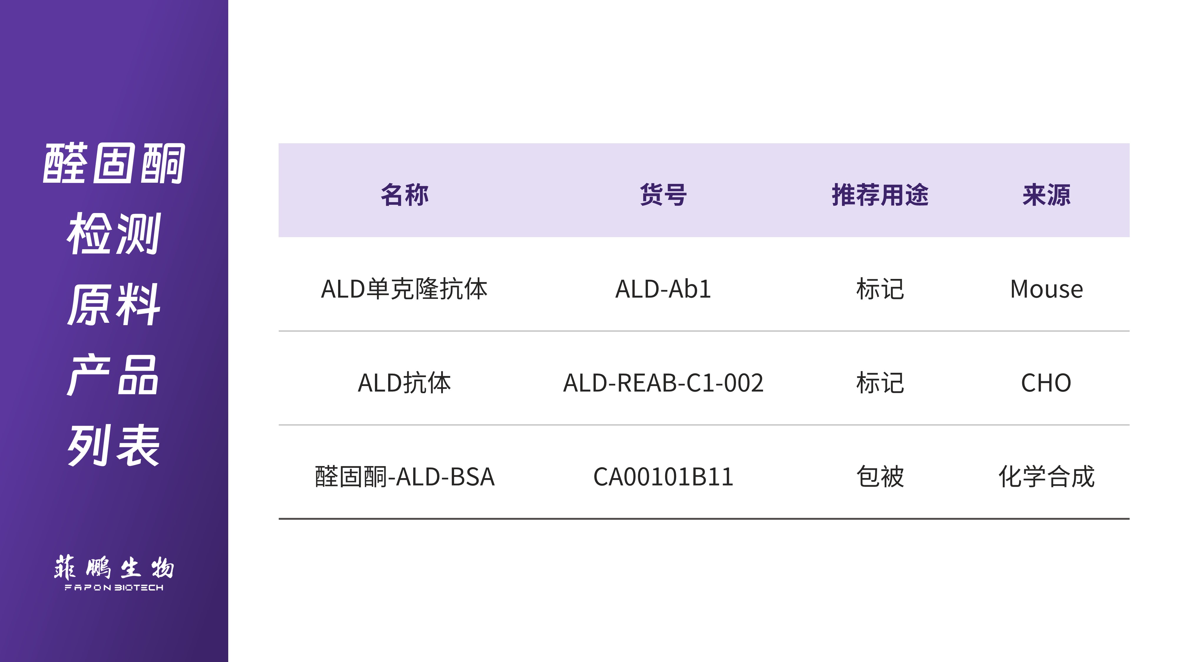 菲鵬生物已推出醛固酮、腎素、皮質醇項目核心檢測原料,可提供核心抗體、抗原及解離劑等全套產品,臨床相關性及特異性表現優異。